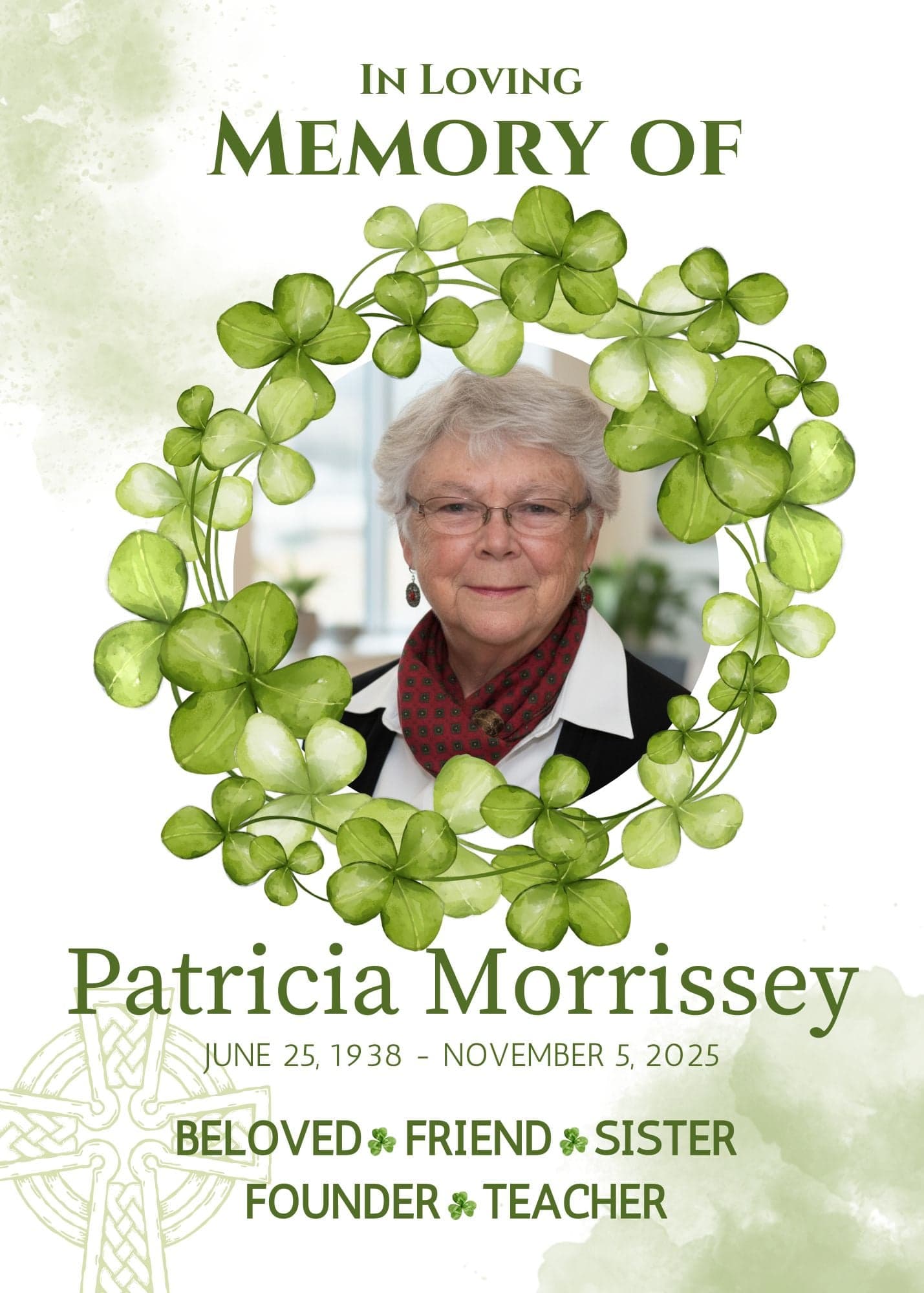 It is with deep sadness that we share the passing of Dr. Patricia (Pat) Morrissey, co-founder of Morrissey Compton, Inc., on Wednesday, November 5, 2025. Pat’s passion, vision, and unwavering commitment were instrumental in shaping our mission and the community we continue to serve. She is survived by her brother, Dan Morrissey, and his wife, Kathryn, of Omaha, NE; her nephew, Joe Morrissey, of Minneapolis; and her niece, Dr. Colleen Morrissey, her husband, Dr. Sean Kamperman, and their daughter, Nora, of Lawrence, KS.