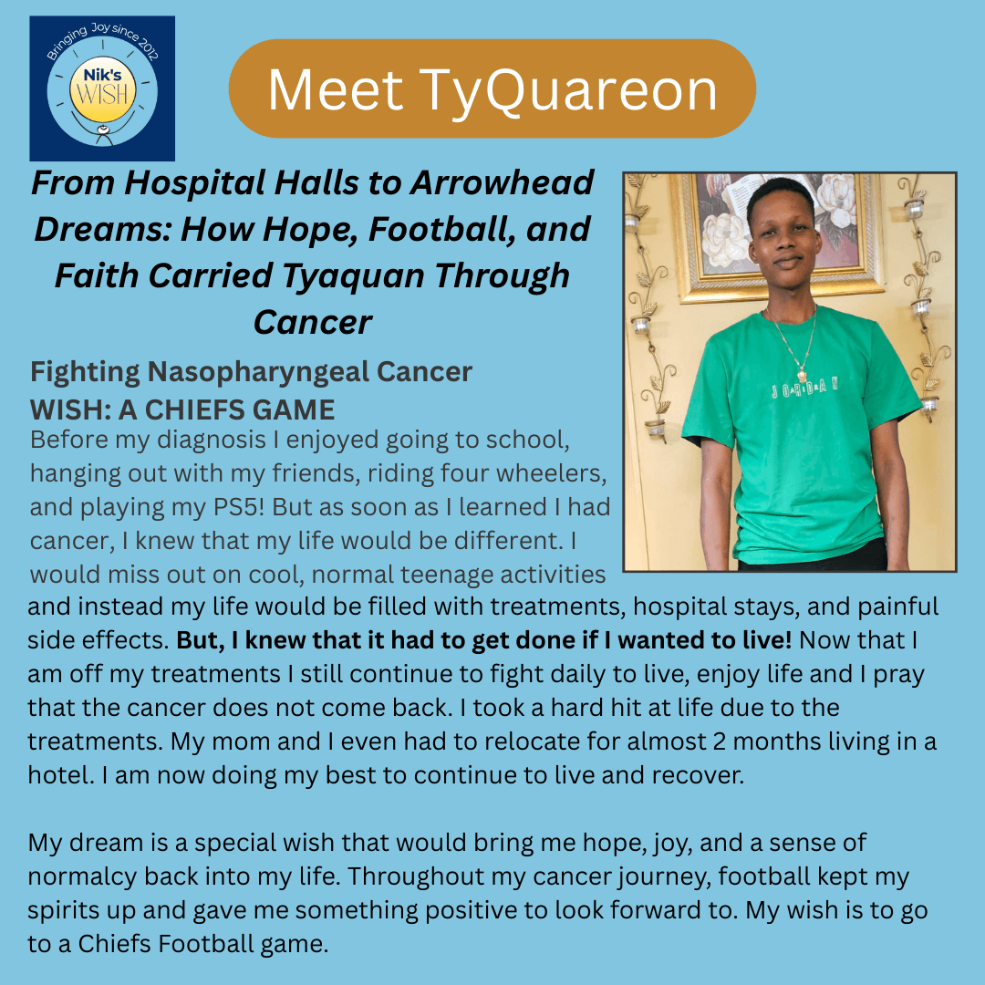 Your sponsorship will directly fund life-changing wishes for young adults battling cancer, offering them hope, joy, and cherished memories during their fight. Together, we can ensure they know they are never alone.