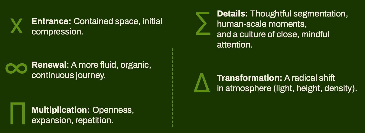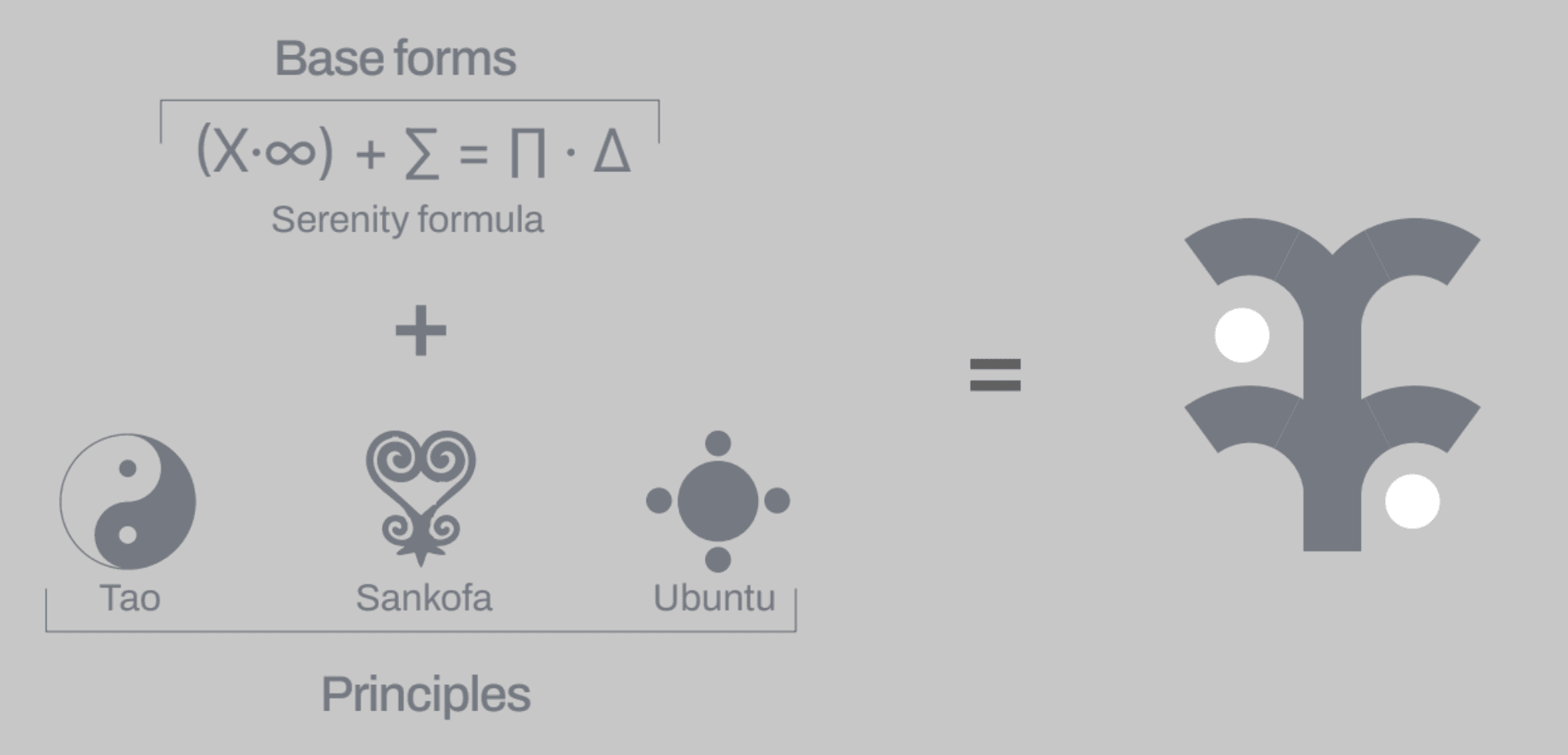 The Tree of Unity emerges from the integration of the equation and the guiding principles of Ubuntu, Sankofa, and Tao. Ubuntu defines interconnection — the tree’s elements exist in relationship, reflecting community and shared growth. Sankofa anchors the structure in memory, suggesting that forward expansion is sustained by honoring origin. Tao governs harmony and balance, expressed through proportion, symmetry, and the dialogue between positive and negative space. Together, these principles shape the tree as a living architectural metaphor. It represents a system where connection, memory, and equilibrium converge.
