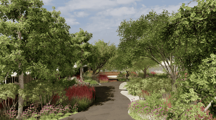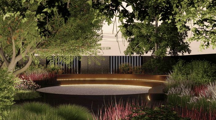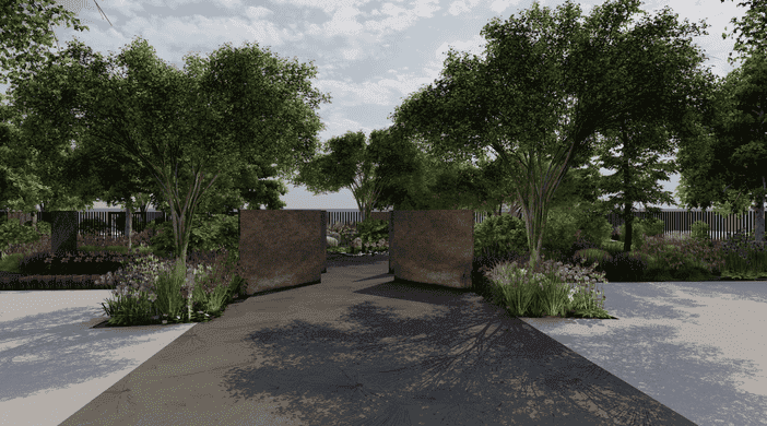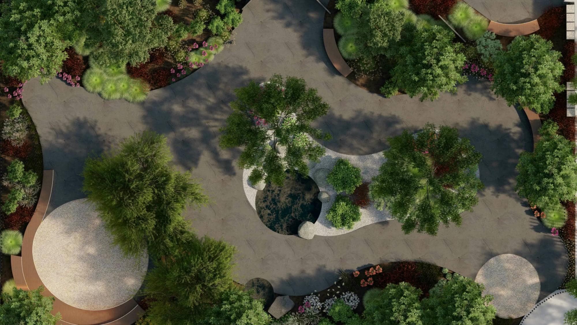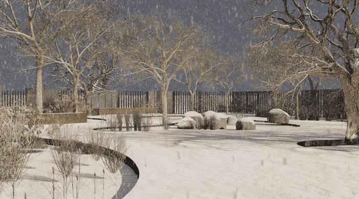 The Serenity Garden is a Permanent, multigenerational sanctuary that restores the human spirit; Spanning 24,218 square feet, this space invokes reflections, healing & models sustainable leadership through ecological stewardship. Unfolding as a sequential landscape that reminds us of our inter-connectiveness & keeps us grounded through exploration. Inspired by geometric shape and the philosophical foundation of Ubuntu, Sankofa & Obuntu